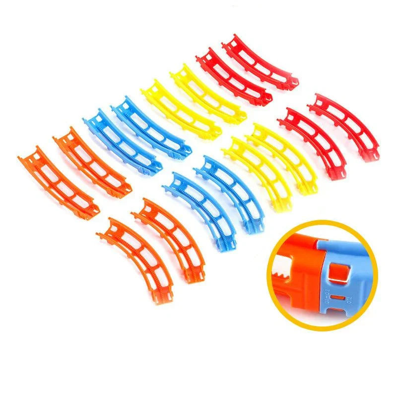SPLICEABLE TRACK FOR VARIOUS PLAY: The track can be easily spliced and reconfigured, allowing kids to create their own unique paths. This feature ensures endless fun, letting children design their ideal racing course every time they play.