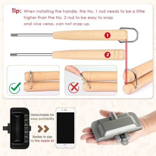 This easy-to-carry & sturdy campfire pie iron will transform your camping experience into a true family hit. Detachable design make it easier to carry than most cast iron pie irons for camping, it's the perfect hand pie maker for the woods, mountains, or your garden.