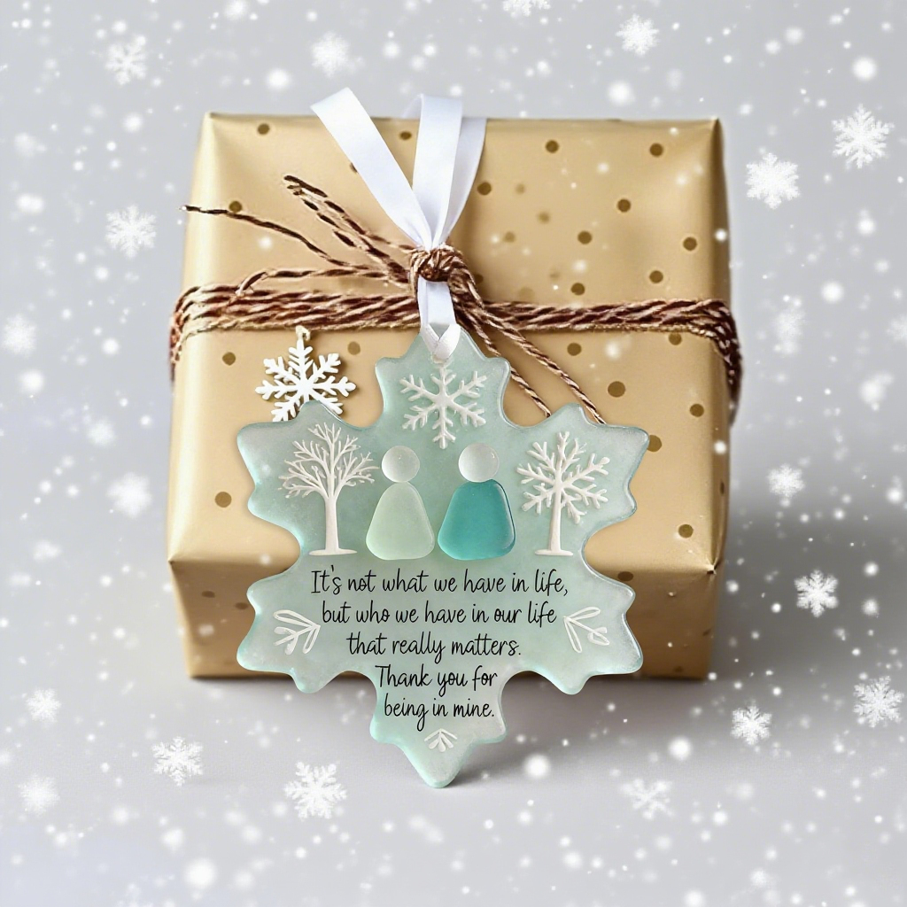 🎉Celebrate the beauty of connection with our Snowflake Sea Glass Ornament.Handcrafted with care, each ornament is adorned with genuine sea glass, making it as rare and precious as the friendships it honors.💫