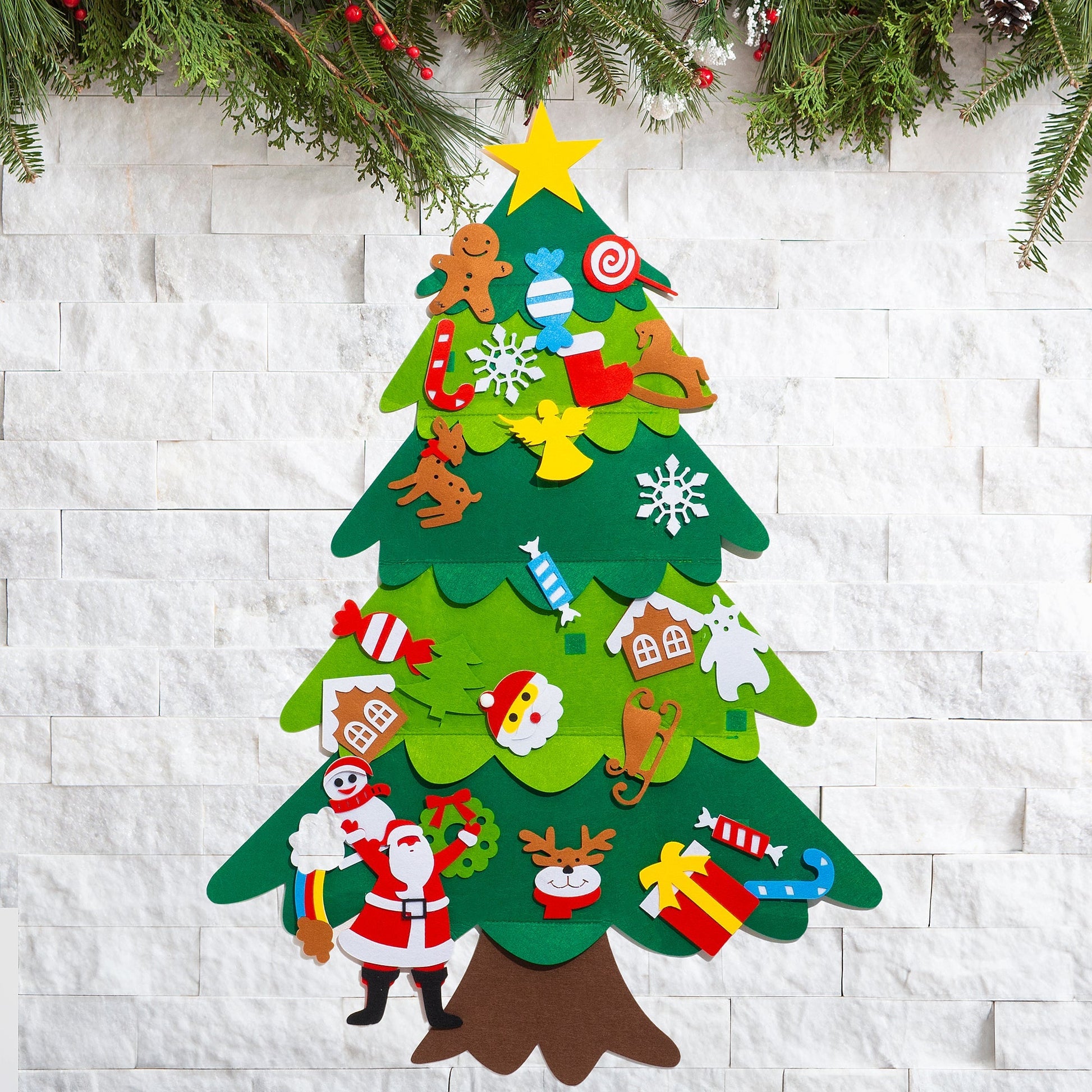 All the ornaments and tree are made of felt material making themĀ safe for children